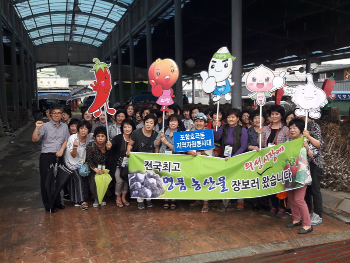지난 2일에는 포항 효곡동 자원봉사대원 40여 명이 의성전통시장을 찾아 갓 수확된 햇마늘과 농산물을 사고, 사촌가로숲 등 지역관광지를 방문했다.
