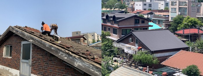 이에 따라 오랜 세월을 버텨 지붕 틈이 벌어지고 기와가 깨져 1층까지 누수가 진행됐던 집에 새로운 지붕이 입혀졌다.