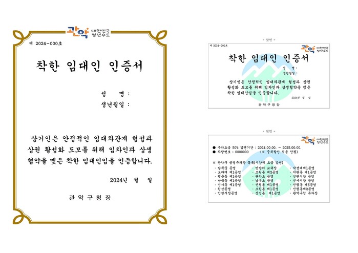 ▲ 착한 임대인 인증서 이미지. 관악구 제공 |