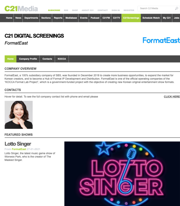 ▲지난 2월 유럽 유력 매체 C21Media에서 한국 제작사 포맷티스트의 예능 <로또싱어>가 스크리닝을 통해 소개되었다. |