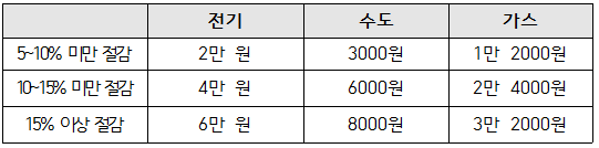 최근 2년간 월별 평균 사용량과 현재 사용량을 비교해 5% 이상 줄였으면 전기·상수도·도시가스 사용량 감축률에 따라 인센티브 산정한다.