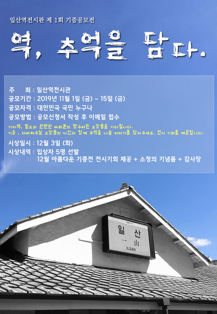 공모전 입상자는 12월 예정된 ‘역 , 추억을 담다.’ 전시회에 소장품이 전시되는 전시 기회가 주어지며 감사장, 고양시 특산물로 구성된 소정의 상품을 제공할 예정이다.