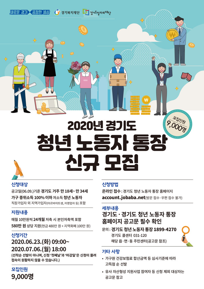 경기도 청년노동자 통장은 저소득 청년 노동자가 목돈을 마련할 수 있도록 지원해 청년의 노동·취업의지를 고취시키 위한 지원사업이다.