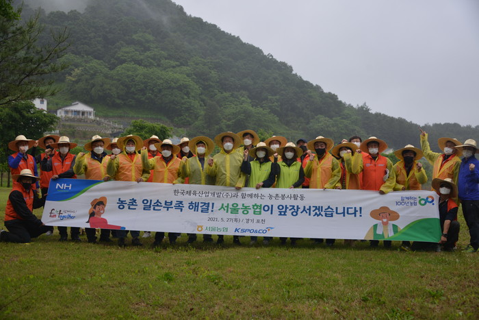농협 서울지역본부(본부장 이대엽)는 27일 농업·농촌의 공익적 가치를 알리고 농촌지역의 일손부족 문제를 해결하기 위해 한국체육산업개발(주)과 함께 ‘국민과 함께하는 농촌봉사활동’을 실시했다.