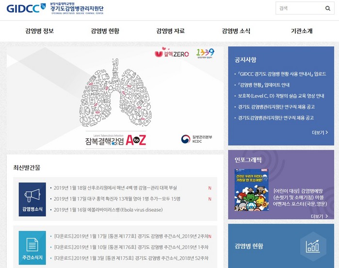20일 도에 따르면 도민들에게 매일 업데이트된 최신 감염병 정보를 제공하기 위해 지난해 말 ‘감염병관리지원단 홈페이지(www.gidcc.or.kr)’ 개편을 완료했다고 밝혔다.