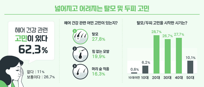 | ▲가장 큰 고민은 ‘탈모’ – 빠르면 20대부터 시작, 두피 관리 필요성에 대부분 공감해 |