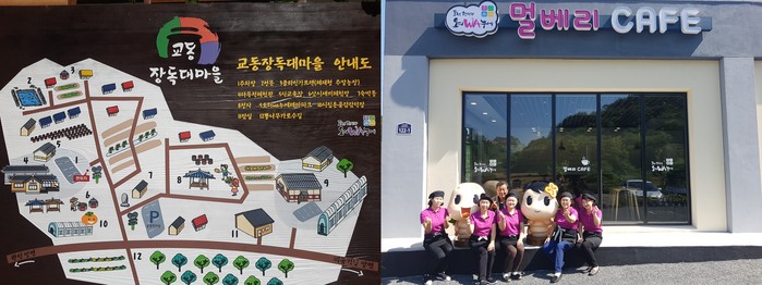 장독대마을에서는 누에와 오디를 활용한 식품과 ‘시집온 곶감’을 가공·판매하고 있으며, 1주민 1자격증을 원칙으로 각종 기술을 익혀 카페 운영과 된장 담그기 등 체험 농장을 운영하고 있다. 2018년에는 전국 마을기업 경진대회에서 최우수상을 수상하기도 했다.