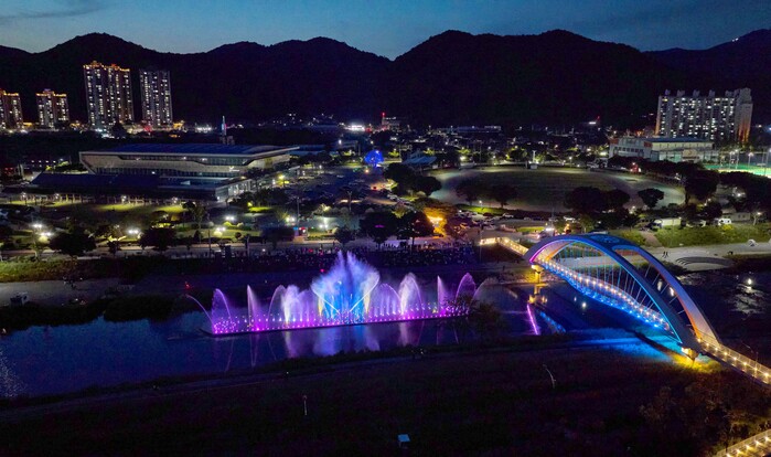 ▲ 화순군의 새로운 랜드마크이자 대표적인 문화생활 시설인 화순천 꽃강길 음악분수 (화순군 제공) |