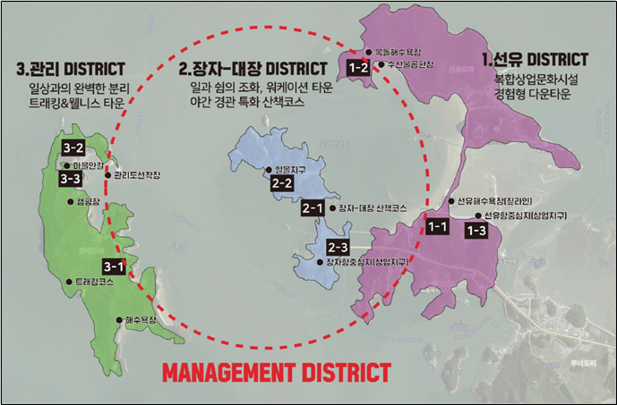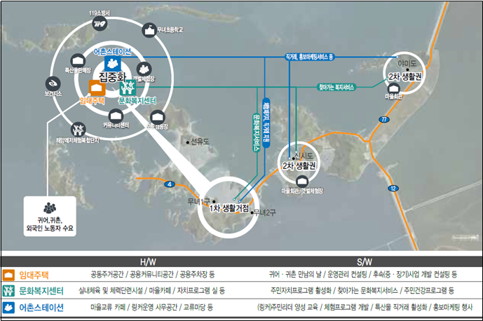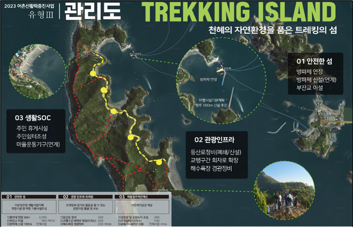 올해 선정된 유형2 야미·신시·무녀도와 선유·장자·관리도 권역은 4년간 어촌앵커조직(민간)이 현장에서 지역 주민과 함께 지역 문제를 발굴하고 해결하는 어촌 생활플랫폼 조성사업을 추진할 계획이며, 유형3 사업으로 선정된 관리도는 방파제 연장과 등산로 정비 및 소공원 조성을 통해 어업 필수시설 및 생활안전시설을 개선할 계획이다.
