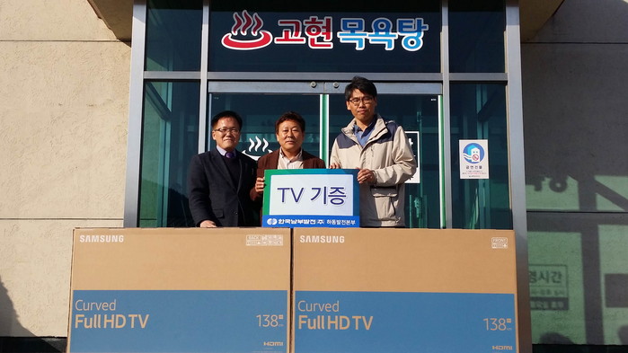 [로컬세계 강연식 기자]경남 하동군 금성면에 소재한 한국남부발전(주) 하동발전본부가 지난 3일 고현목욕탕에 55인치 대형 TV 2대를 기증했다.