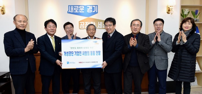경기도는 지난 21일 오후 경기도청 북부청사 평화부지사실에서 ‘개성공단 기업인 취약계층 지원 물품 전달식’을 진행했다고 밝혔다.
