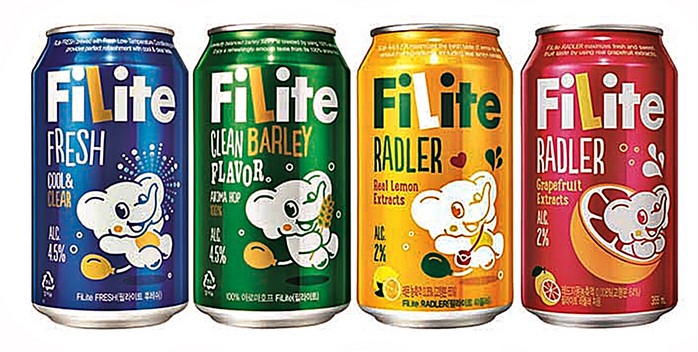 | ▲필라이트 후레쉬-필라이트-필라이트 라들러-필라이트 라들러 자몽(왼쪽부터) [하이트진로 제공] |