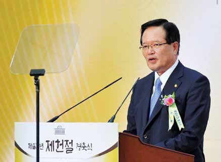 ▲ 정의화 국회의장이 제66주년 제헌절 경축식에 참석해 축사를 하고 있다.<사진 출처=국회 홈페이지> |