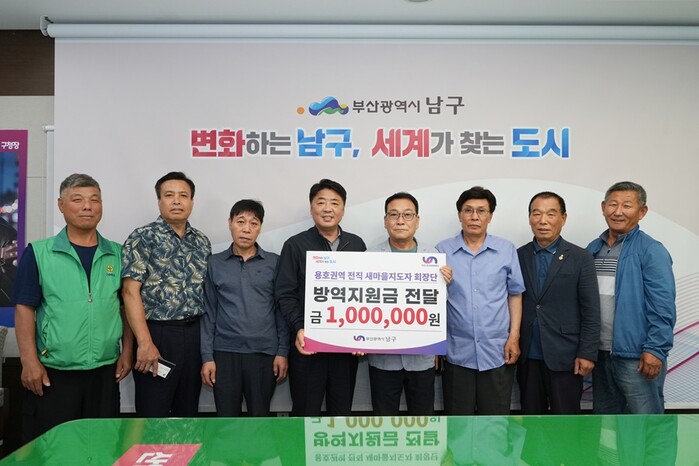 [로컬세계 부산=맹화찬 기자]부산 남구 용호권역 전직 새마을 회장단 모임인 ‘용새모’는 지난 지난 15일 남구청장실에서 용호1 ~ 4동 새마을지도자협의회에 일백만원 상당의 방역지원금 전달식을 가졌다고 18일 밝혔다.