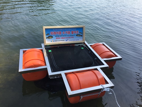수면형 활어조는 잡은 외래어종을 살아있는 상태로 수중 그물에 넣도록 만든 것으로 살생을 원치 않는 사람의 의견을 반영했고 관리인은 매일 2∼3회 수거 관리하며 불편 민원을 최소화했다.