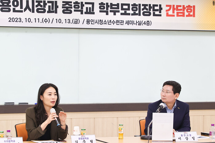 | ▲ 지난해 10월 11일 이상일 용인특례시장이 수지구와 기흥구 일부 지역 중학교 학부모를 만나 교육 발전을 위한 의견을 교환했다. |
