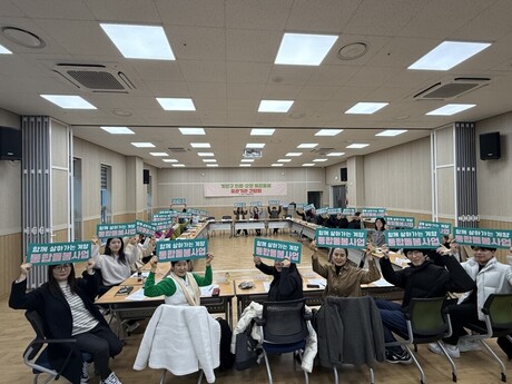 | ▲ ‘한우소비촉진 ESG 활동 공유회’에 참석한 한우자조금관리위원회와 삼성웰스토리 임직원들이 프로모션의 성공을 기원하는 포즈를 취하고 있다. 한우자조금 제공 |