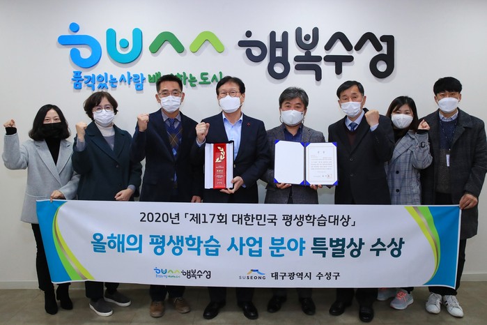 [로컬세계 박세환 기자]대구 수성구는 교육부에서 선정하는 ‘2020 제17회 대한민국 평생학습대상’의 ‘올해의 평생학습 사업 분야’에서 특별상을 수상했다고 7일 밝혔다.