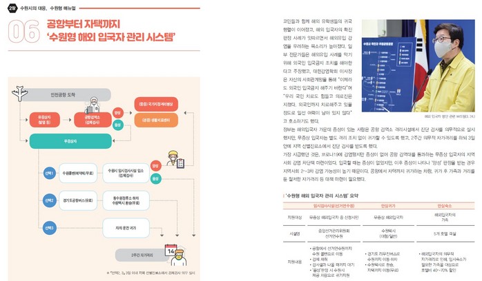 한 예로 ‘수원형 해외입국자 관리시스템’에는 해외입국자 이송과정. 임시검사시설 운영 매뉴얼 등이 수록돼 있다.