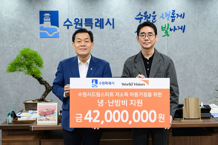 [로컬세계=김병민 기자]경기 수원시는 지난 16일 월드비전 경기남부사업본부가 '수원시 드림스타트 아동 가정에 냉·난방비로 사용해 달라'며 시에 4220만원을 후원했다고 17일 밝혔다.