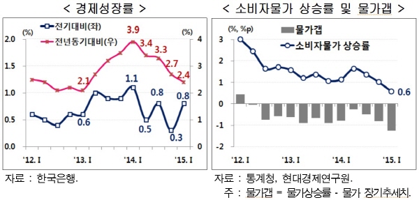 부분별로는 주택·건설경기가 내수회복을 견인할 수 있을 것으로 봤으며 민간소비는 최근 성장세가 1%대에 머무는 가운데 소득정체 및 가계부채의 누증, 평균소비성향 하락으로 인해 소비회복세가 지연되고 있는 것으로 진단했다.
