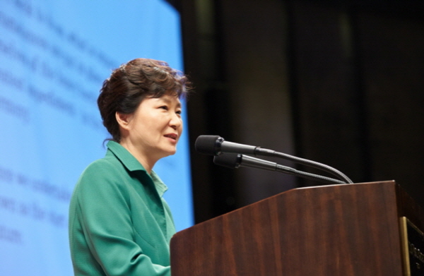▲ 박근혜 대통령이 지난 22일 오후 서울 중구 소공동 웨스틴조선호텔에서 주한 일본대사관 주최로 열린 한일 국교정상화 50주년 기념 리셉션에서 축사를 하고 있다.<사진출처=청와대 홈페이지> |