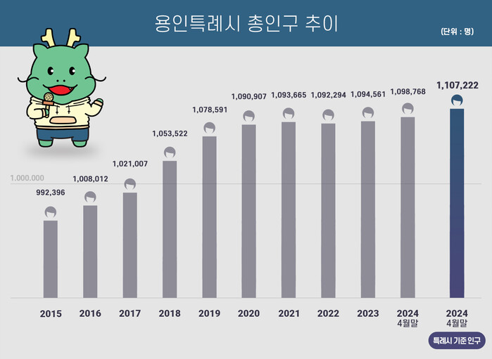▲ 용인특례시 총인구 추이. 용인시 제공 |