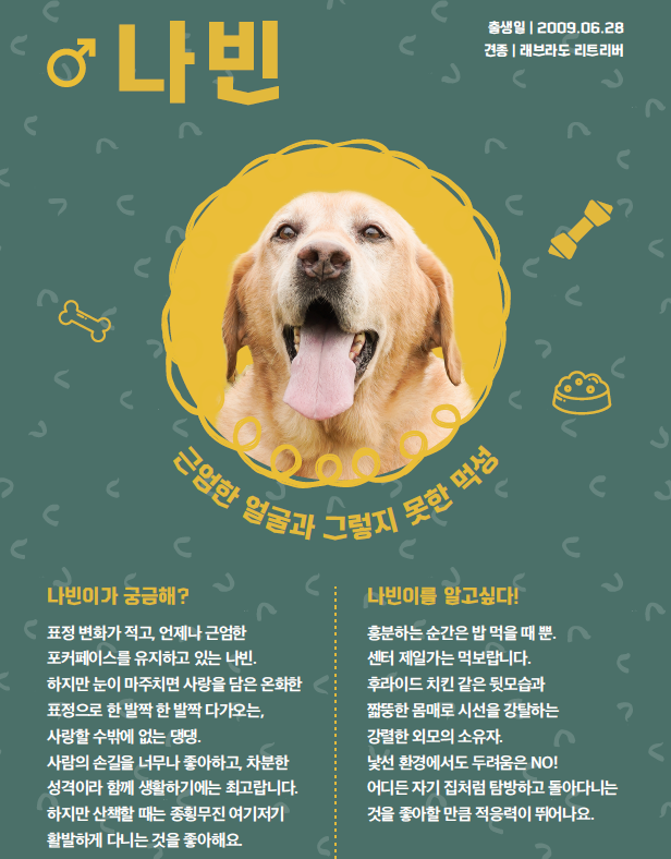 | ▲무상분양견 나빈 프로필.(관세청 제공) |