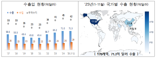 전체 수출의 88를 차지하는 전선, 변압기, 접속차단기 등 핵심 품목은 올해 역시 동기간 기준 최고 실적을 기록하며 상승세를 이끌었다. 국가별로는 AI 기술의 중심축인 미국 수출이 압도적 1위이며, 올해 수출한 178개국 중 미국을 포함한 23개국에서 역대 최고 실적이 나타났다.