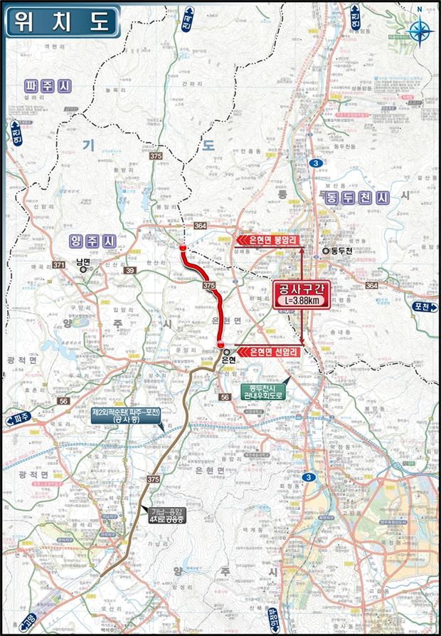 이번 ‘은현~봉암 간 도로확포장공사’는 양주시 은현면 선암리에서 은현면 봉암리까지 남북을 잇는 총 3.88㎞ 도로 구간을 2차로로 확장하고, 교량 1개와 교차로 3곳을 함께 개설하는 사업이다.