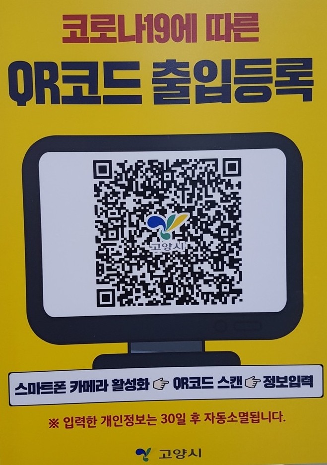 한편 고양시는 코로나19와 관련해 전국적으로 ‘생활 속 거리 두기’가 강조되면서, 지난 25일부터 청사출입을 간편하고 스마트하게 관리하는 QR코드 도입을 시작했다.
