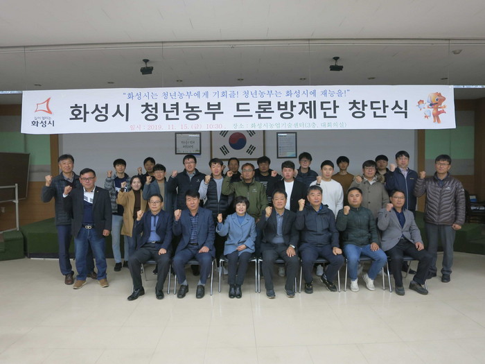 화성시는 지난 15일 오전 화성시농업기술센터 3층 대강당에서 ‘화성시 청년농부 드론방제단 창단식’을 개최했다고 17일 밝혔다.
