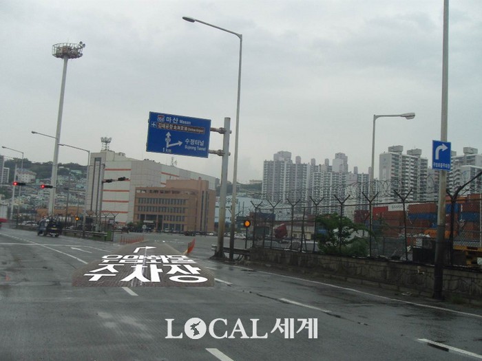 [로컬세계 맹화찬 기자]부산시 남구청은 최근 우암부두 컨테이너 화물주차장의 출입을 동서고가로 감만램프 방향으로 진입하도록 새로운 진입로를 개통하였다고 지난 12일 밝혔다.