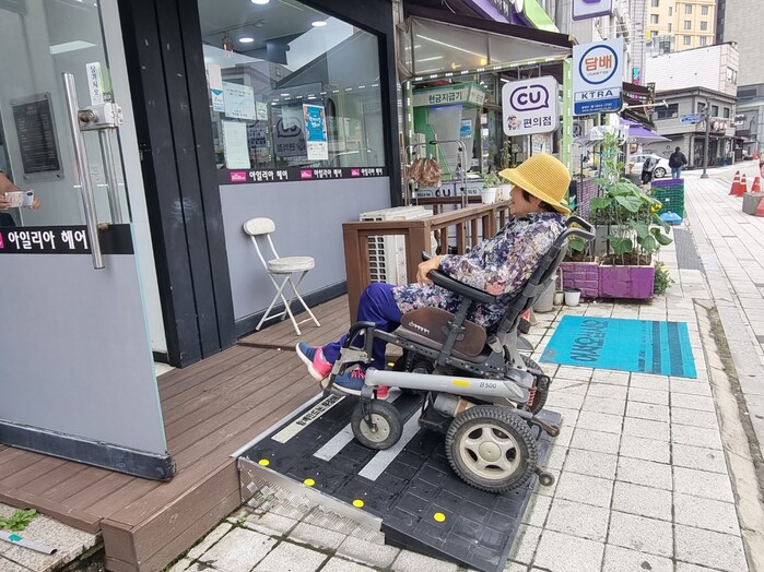 | ▲ 용인특례시가 지역 내 생활밀착시설에 설치비를 지원한 경사로의 모습. 용인시 제공 |