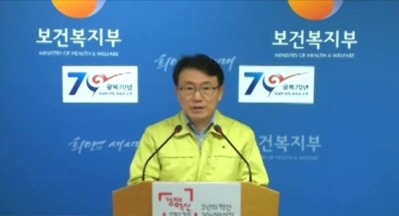 ▲ 권덕철 중앙메르스관리대책본부 총괄반장이 지난 17일 오전 세종 제3공용브리핑실에서 브리핑을 하고 있다.<사진출처=e-브리핑 화면캡처> |