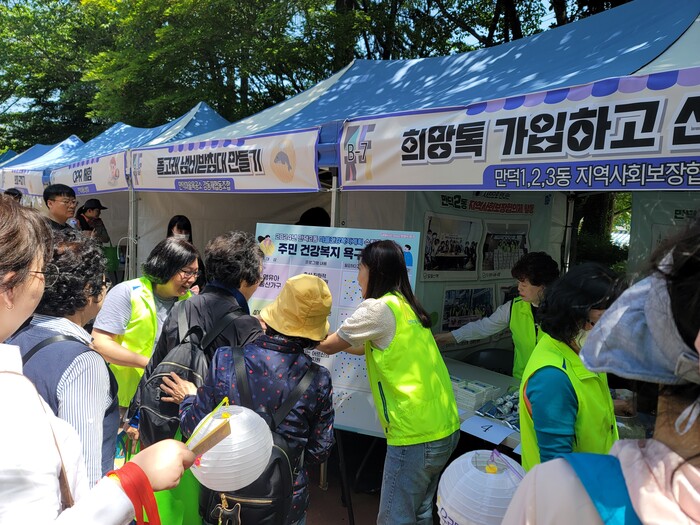 ▲부산 북구 만덕2동 마을건강복지계획 수립을 위한 '주민 선호도 조사' 를 18일 실시했다. 지역 건강복지 관련 행사 장면. 북구청 제공 |