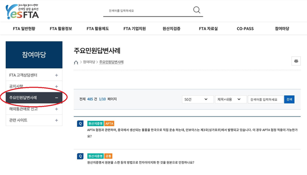 관세청(청장 임재현)은 우리나라가 체결한 자유무역협정(FTA)을 수출입기업들이 쉽게 활용하도록 최근 2년간 자유무역협정 관련 민원 질의·답변을 유형별로 분석해 시사성이 높은 사례 120개를 에프티에이 누리집을 통해 이번달 4일부터 공개했다.