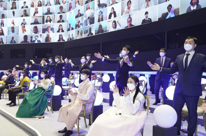 ▲세계평화통일가정연합은 27일 세계 120개국의 미혼 청년 10만 명이 동참하는 가운데 ‘효정축복축제’를 개최했다. 사진은 문화공연.장면. |