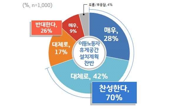 | ▲이동 노동자 휴게공간 설치계획 확대 찬반. |