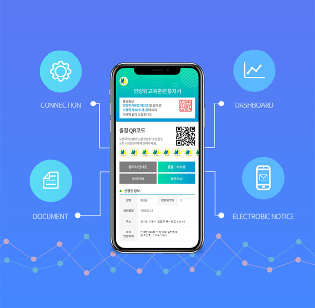 모바일 고지 받은 민방위대원은 전자고지의 본인동의 및 인증절차를 거친 후 통지서를 수령하게 된다. 단순 교육훈련 통지서 전자고지 이외에도, 큐알(QR)코드를 활용한 출결처리, 교육훈련 설문서 작성도 모바일에서 모두 수행함에 따라 민방위대원 교육의 효율을 높일 수 있게 됐다.