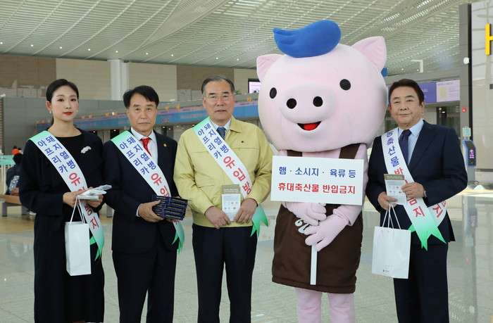[로컬세계 이명호 기자]대한한돈협회(회장 하태식)는 지난 3일, 인천국제공항에서 농림축산식품부(장관 이개호), 농림축산검역본부(본부장 박봉균)와 공동으로 아프리카돼지열병의 국내 유입을 방지하기 위한 예방 캠페인을 펼쳤다.