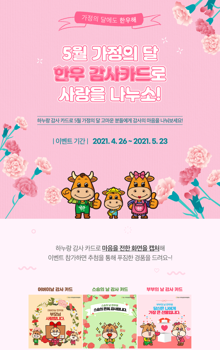 한우자조금관리위원회(이하 한우자조금)는 한우유명한곳 홈페이지에서 오는 23일까지 ‘한우 감사 카드로 사랑을 나누소’ 이벤트를 실시한다.