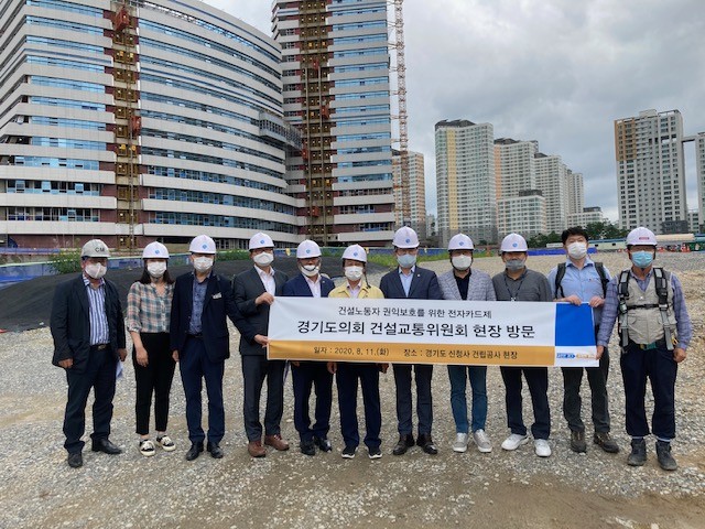 경기도와 경기도의회 건설교통위원회는 지난 11일 수원 광교 ‘경기도청 신청사 건립공사’ 현장에서 건설노동자 전자카드제에 대한 현장점검을 실시했다.