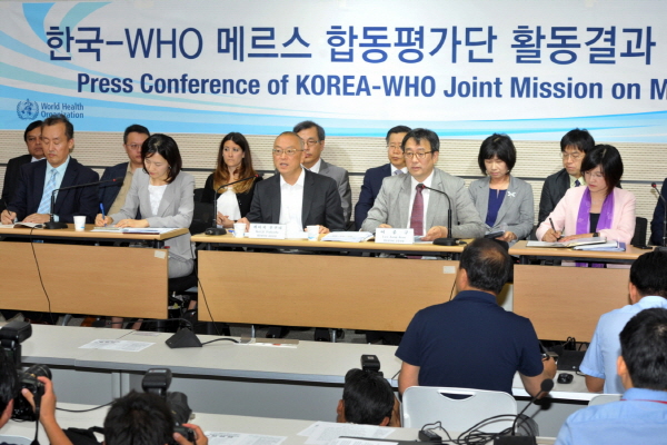 ▲ 한국-WHO 메르스 합동평가단이 지난 13일 활동결과 기자회견을 하고 있다.<사진출처=보건복지부 홈페이지> |