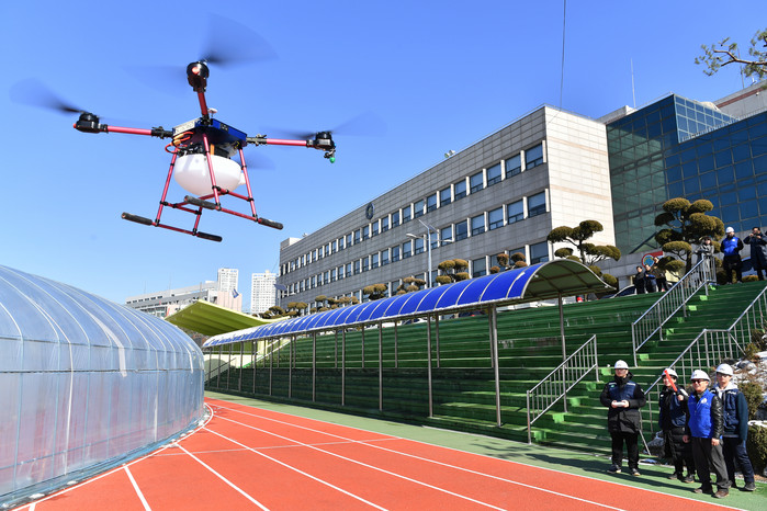 성숙한 수원시민들의 의식은 방역 분야에서도 두드러졌는데, 가장 눈에 띄는 활동은 드론을 활용한 학교 방역이었다.