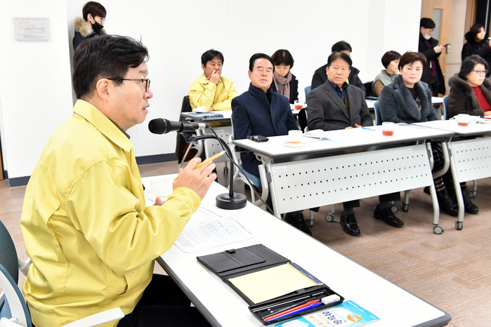 | ▲수원유스호스텔을 자가격리시설로 활용하기 위해 주민들을 설득하고자 간담회를 진행하고 있는 염태영 시장. |