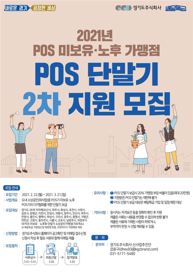 경기도주식회사 관계자는 “POS 시스템은 영업에 꼭 필요한 기기이지만 POS가 없거나 오래되어 기능이 떨어져 어려움을 겪는 소상공인들에게 도움이 되고자 이번 사업을 마련했다”며 “보다 많은 지역의 가맹점주들에게 도움이 되기 위해 지역·기간을 확대했으니 많은 관심 부탁드린다”고 전했다.