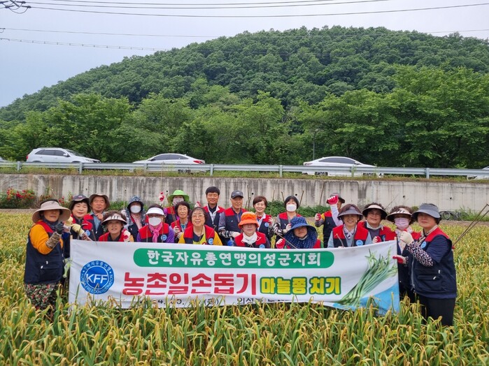 이번 일손돕기는 마늘 수확을 앞두고 일손 부족으로 애를 태우고 있는 농가를 지원하기 위한 것으로 회원들은 이른 아침부터 현장에 나와 구슬땀을 흘렸다.