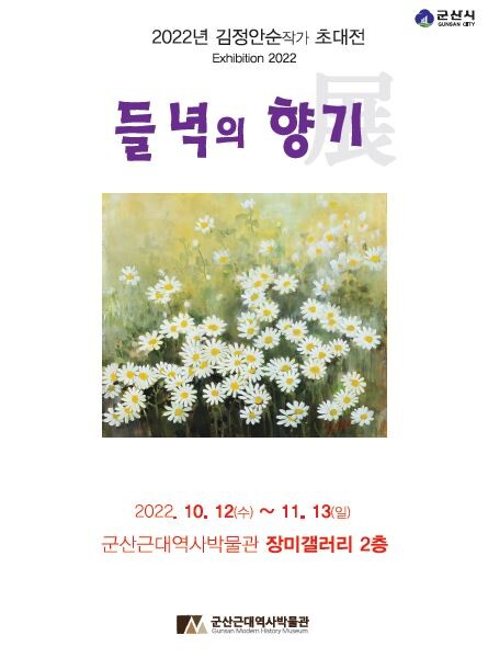 [로컬세계 = 양해수 기자]전북 군산시 근대역사박물관은 지난 12일부터 오는 11월 13일까지 박물관 분관인 장미갤러리 2층 전시관에서 정안순 개인전 '들녘의 향기'를 개최한다고 13일 밝혔다.