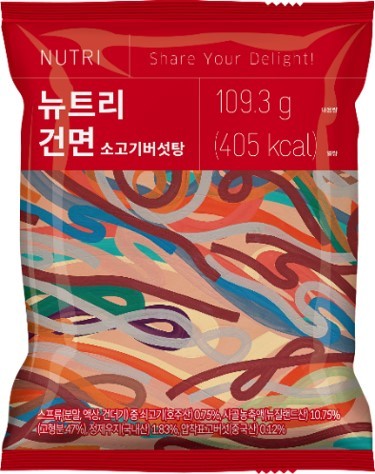 뉴트리건면 소고기버섯탕은 바람으로 말린 면을 사용해 쫄깃한 식감과 깔끔한 뒷맛을 자랑한다. 바람으로 말린 면은 기름에 튀긴 유탕면에 비해 칼로리와 포화지방 함량은 낮고, 깔끔하면서도 담백한 맛이 특징이다.